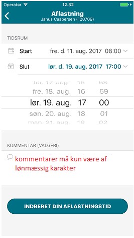 Tryk på knappen "indberet din aflastningstid".