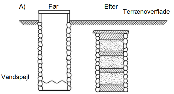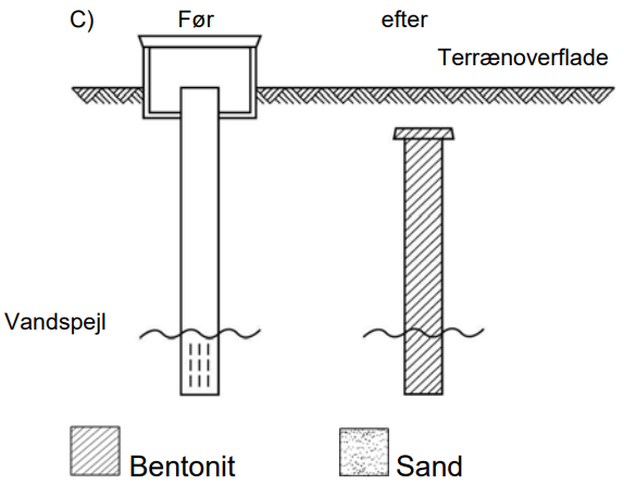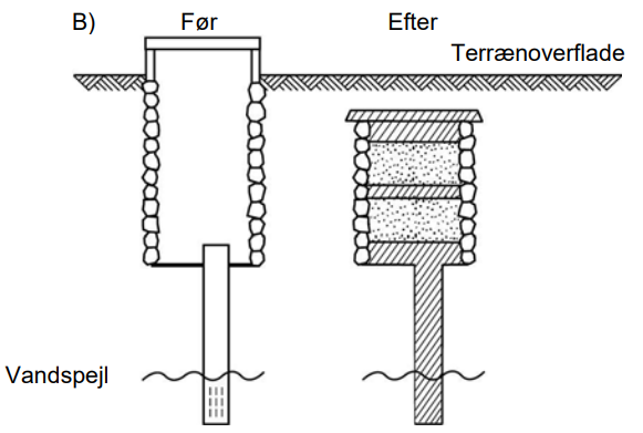 Sløjfning af brønd med boring (Figur B)