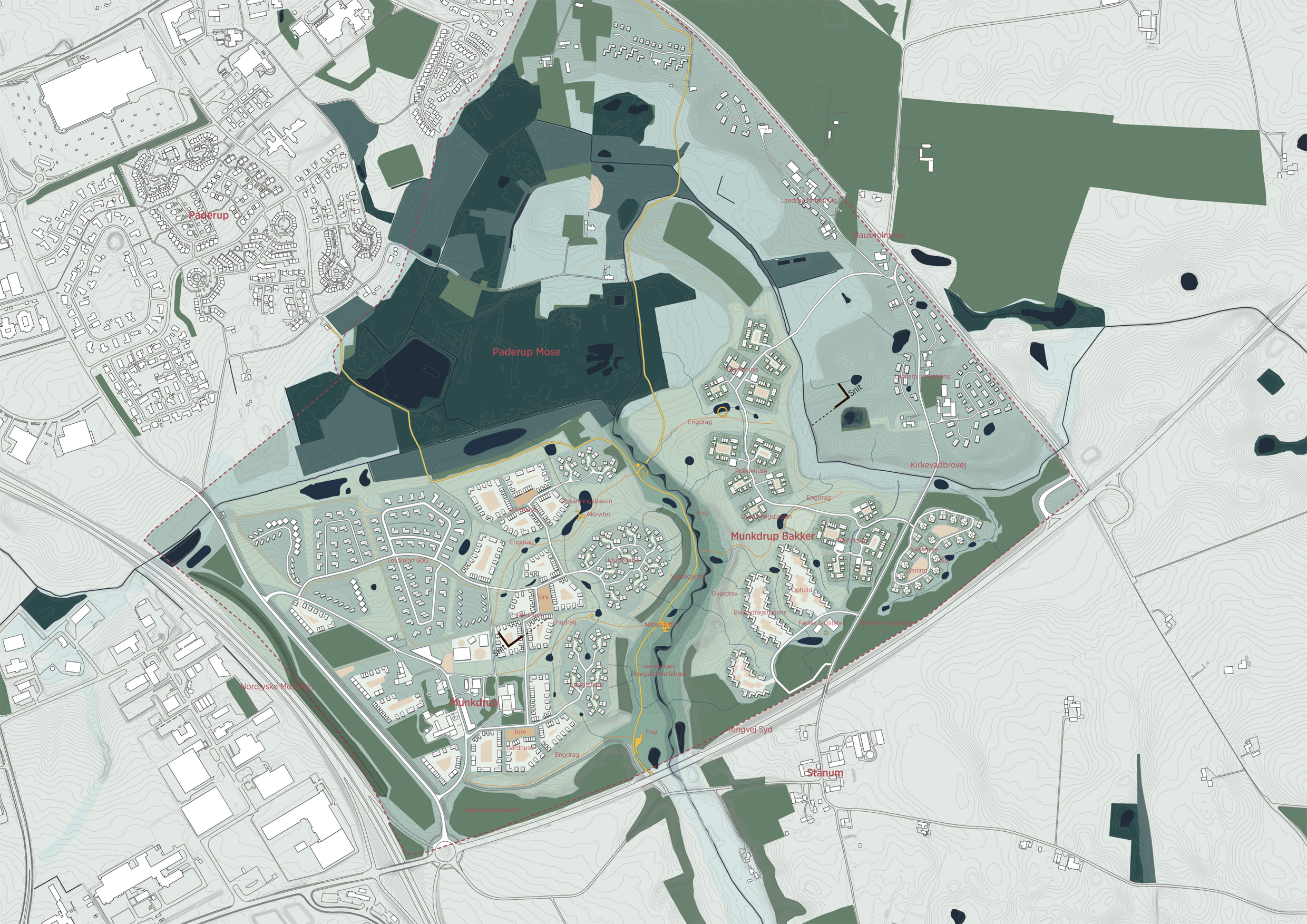 Munkdrup og Munkdrup Bakker skal udvikles som nye bæredygtige landsbyer, der har naturen helt tæt på som en nyfortolket hverdagsressource.