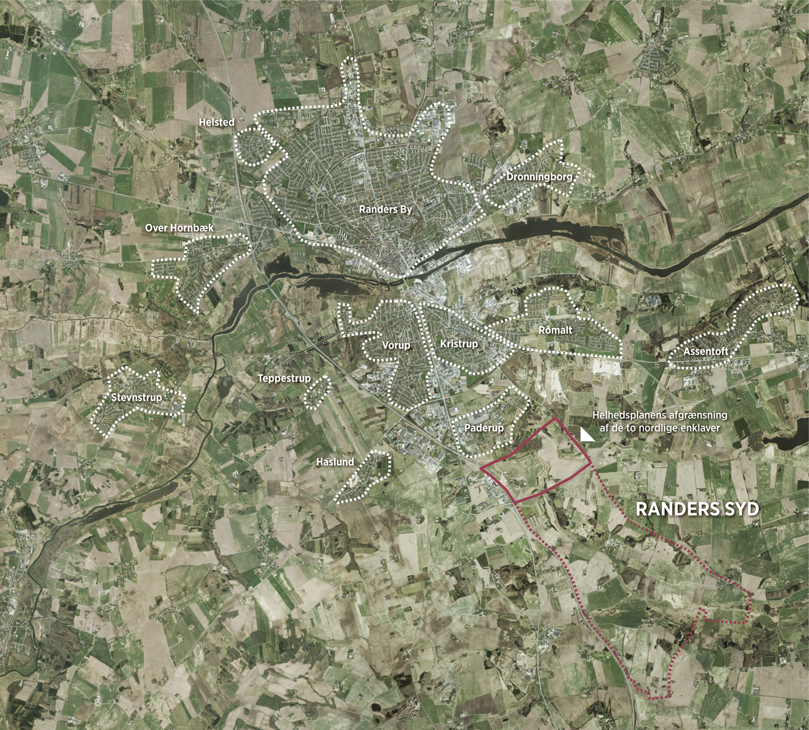 I 2014 udarbejdede Randers Kommune en langsigtet principplan for udviklingen af en ny bydel i sydbyen. Den sydlige bydel dækker over et areal, der strækker sig fra Paderup i nord til landsbyen Robdrup, der balancerer på den sydlige kommunegrænse mod Favrskov. Hele området ligger placeret i smuk natur, på skråninger med udsigt ud over slugter og store, grønne arealer. Bydelen der i størrelse svarer til ca. 50 procent af Randers’ nuværende, vil blive udviklet i løbet af de næste cirka 2-20 år. I alt vil den nye bydel rumme 5-6000 boliger fordelt på syv enklaver.